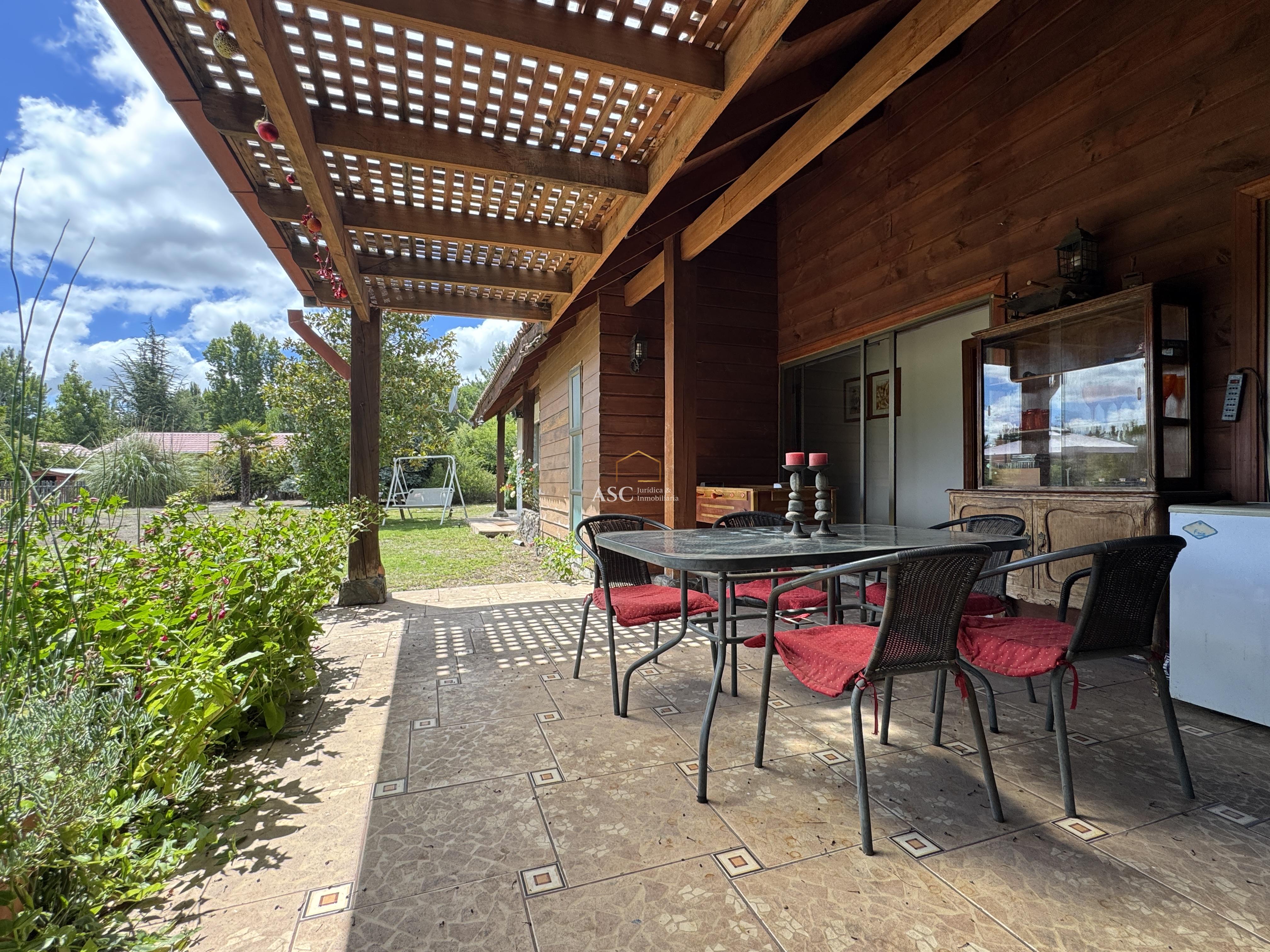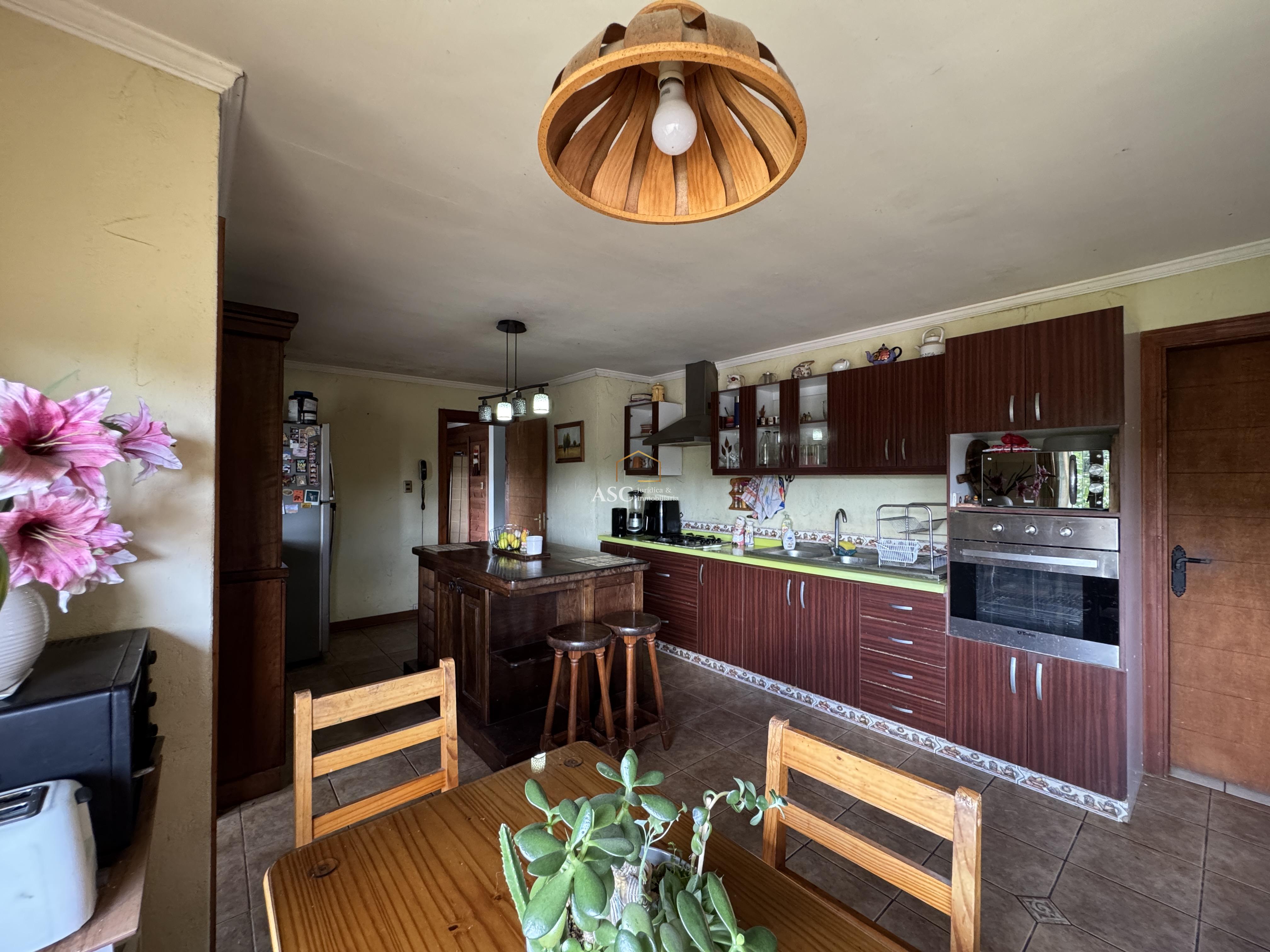 Su jardín formado integra árboles frutales y especies nativas, con sistema de riego automático que facilita su mantención. La vivienda, de 240 m² construidos, destaca por sus espacios amplios y funcionales.