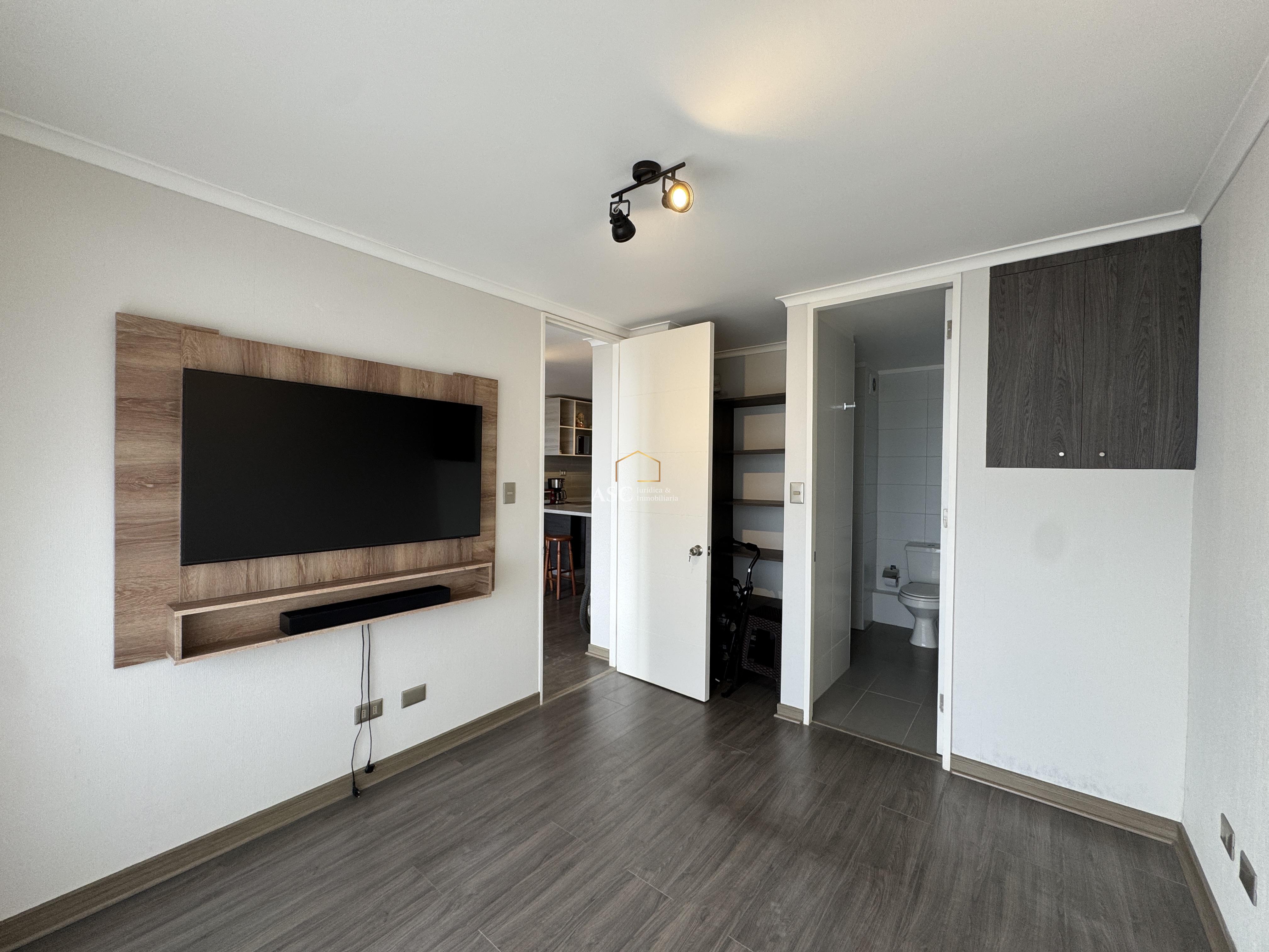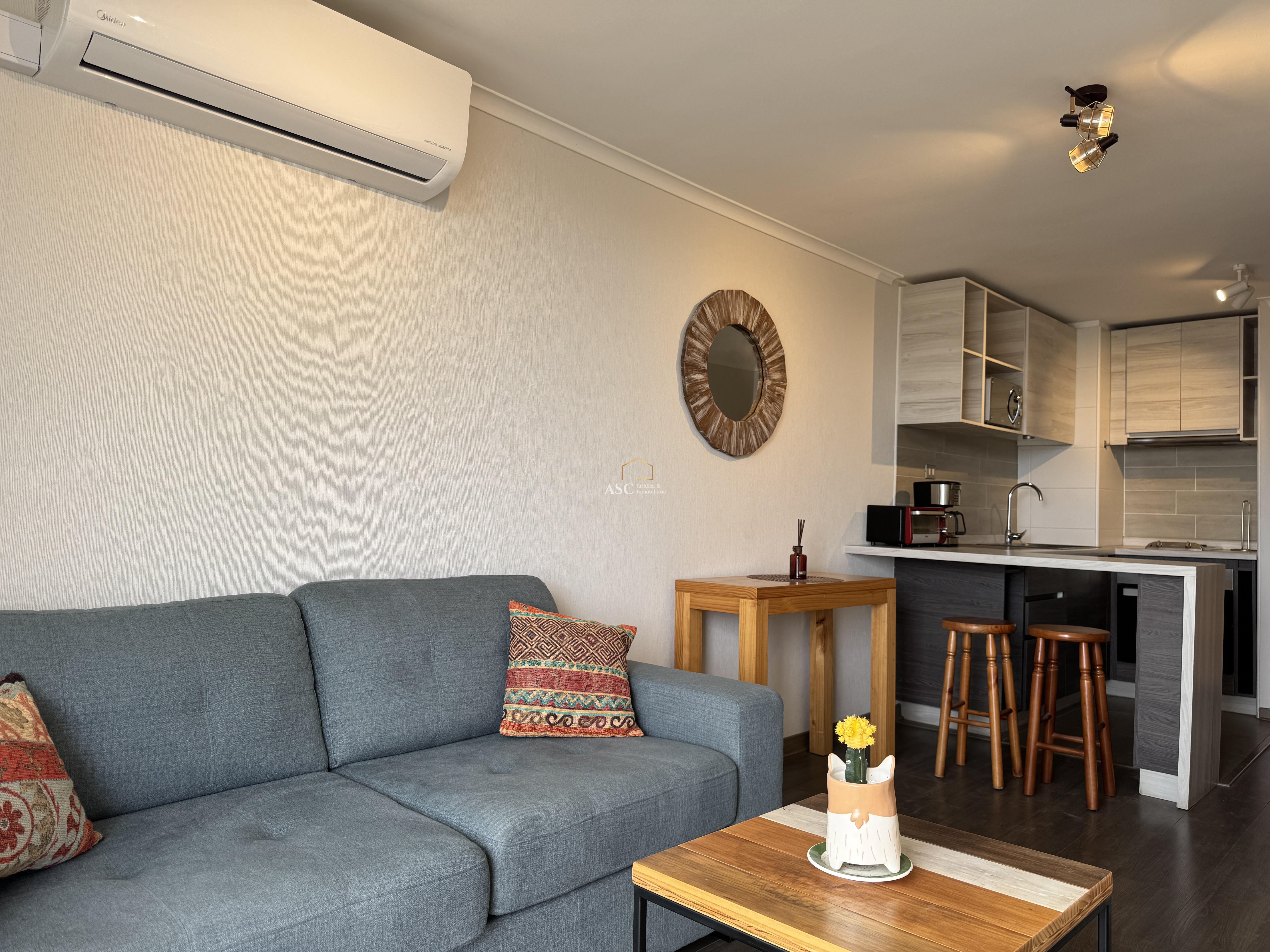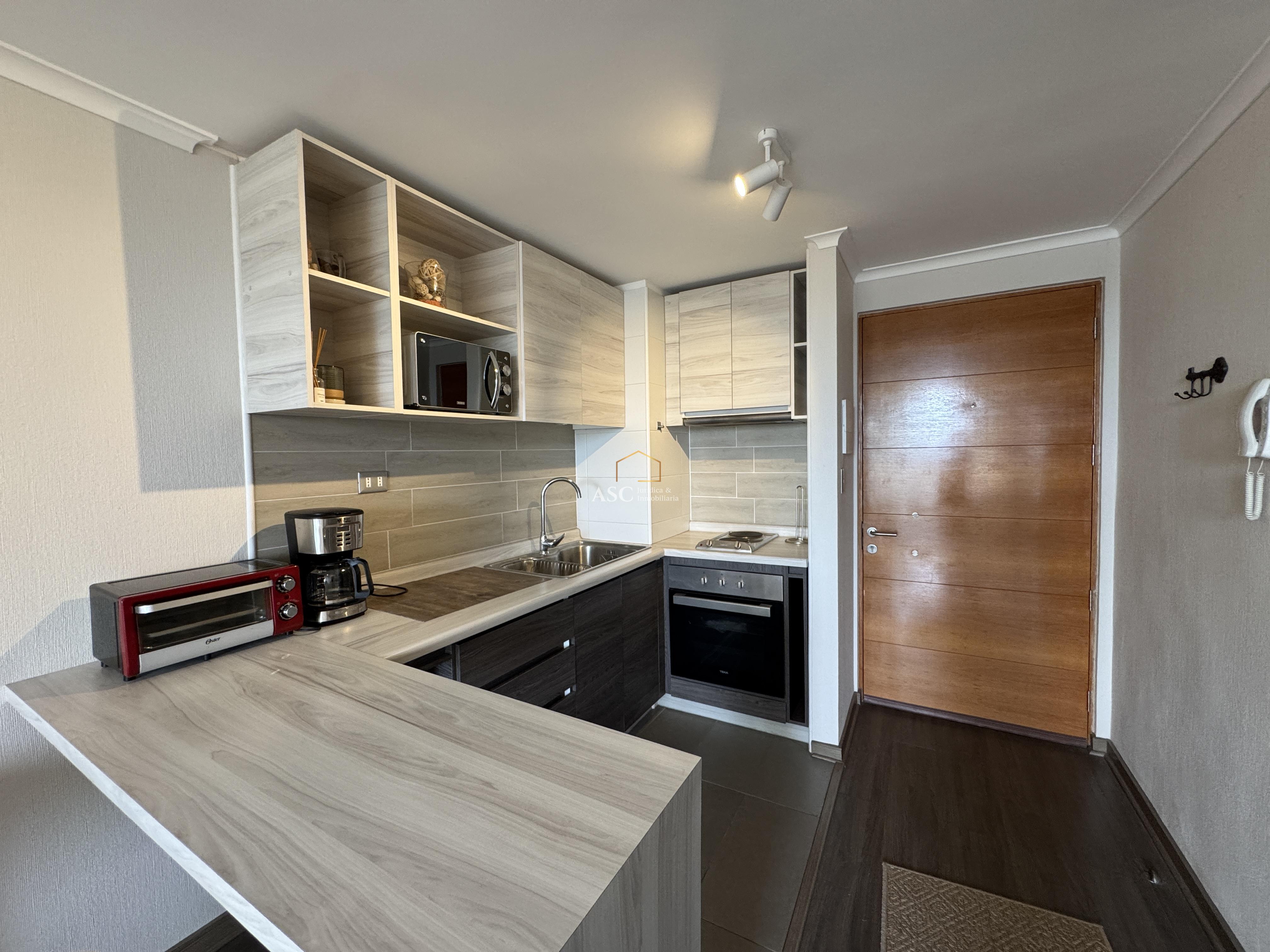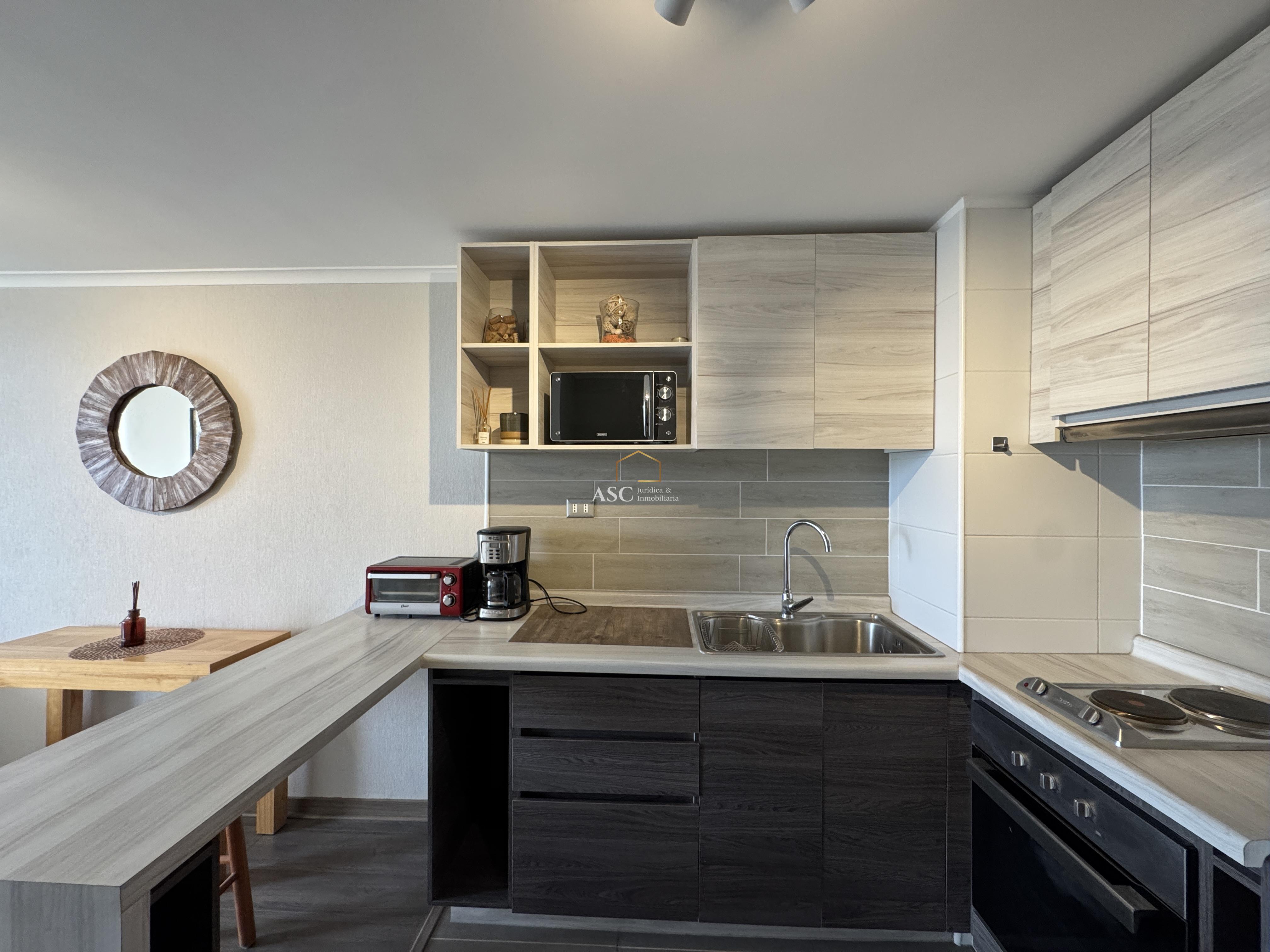 La propiedad cuenta con living, cocina amoblada y equipada con horno, campana y encimera, dormitorio en suite con walk-in closet.